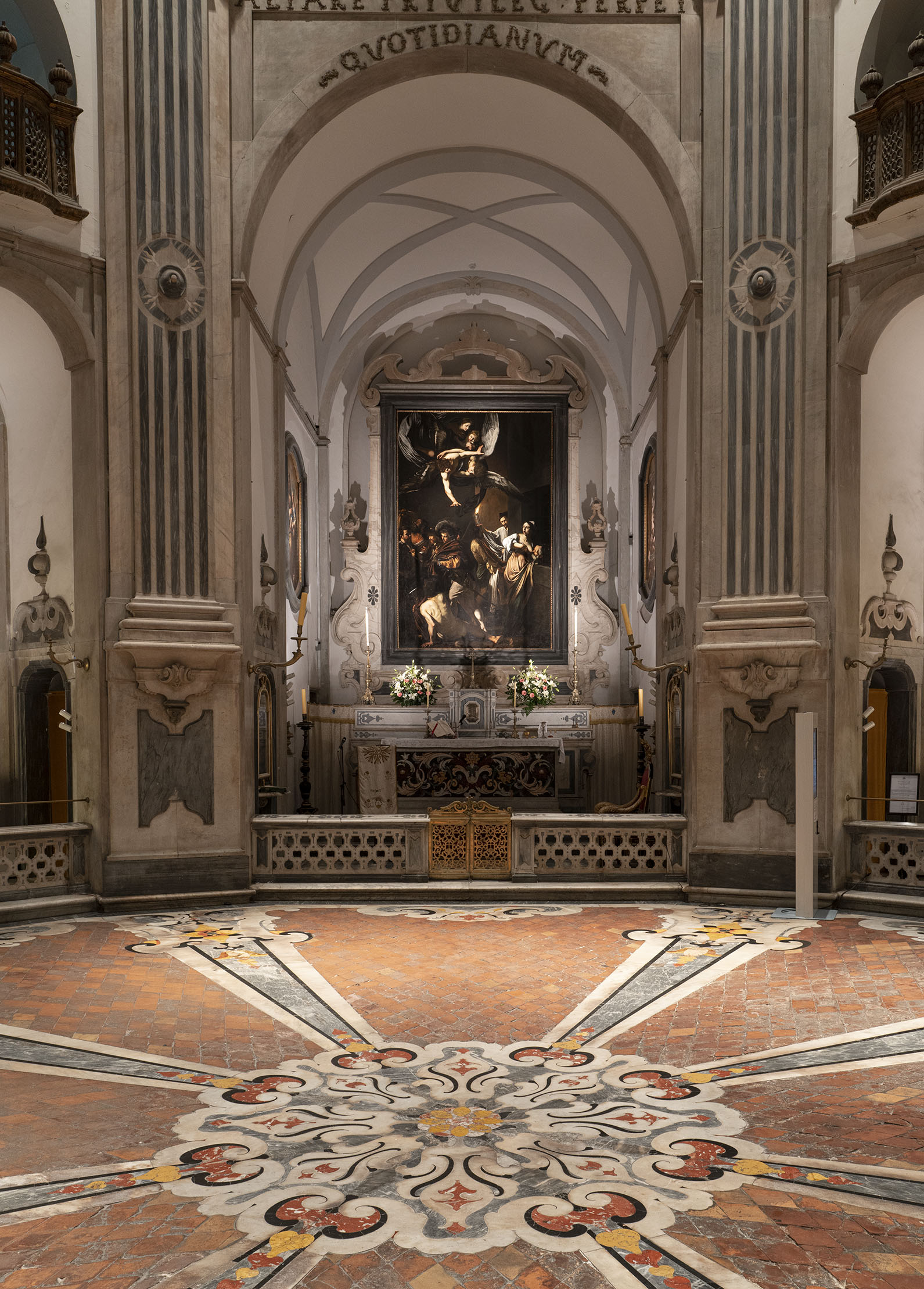 Dopo un lungo periodo a Roma in cui raggiunse il successo come protetto del cardinale fiorentino Francesco Maria del Monte, Caravaggio soggiornò a Napoli due volte. La prima volta fu nel 1606 sotto la protezione della famiglia aristocratica Carafa Colonna e si sistemò ai Quartieri Spagnoli. Ritornò nel 1609, ospite della marchesa Costanza Colonna, dove dipinse le sue ultime opere, fino al luglio dell’anno successivo, per poi partire alla volta di Roma. Lungo il viaggio un’infezione probabilmente trascurata gli fu fatale e morì a Porto Ercole il 18 luglio del 1610.